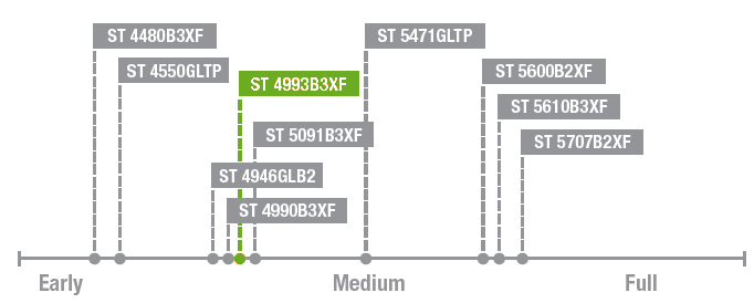 Growers across the Cotton Belt who want hardy, early-season vigor and good storm tolerance can plant Stoneville® 4993B3XF with confidence. This early- to mid-maturity Stoneville cotton seed variety is very adaptable, with strong emergence and good cotton fiber quality. This easy-to-manage variety also delivers resistance to bacterial blight in cotton and consistency in high yield potential.